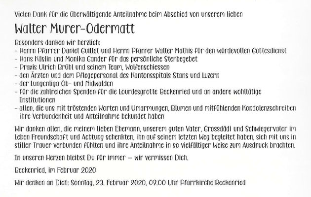 Am 13.Januar 2020 ist unser langjähriger Geschäftsführer Walter Murer im alter von 74 Jahren nach mehr als zwei Jahren Kampf gegen den Lungenkrebs verstorben. Wir werden Ihn nie vergessen und danken für alles was er für uns und die Unternhemung geleistet hat.